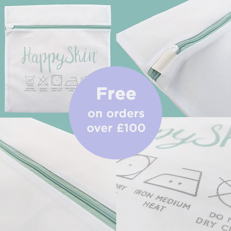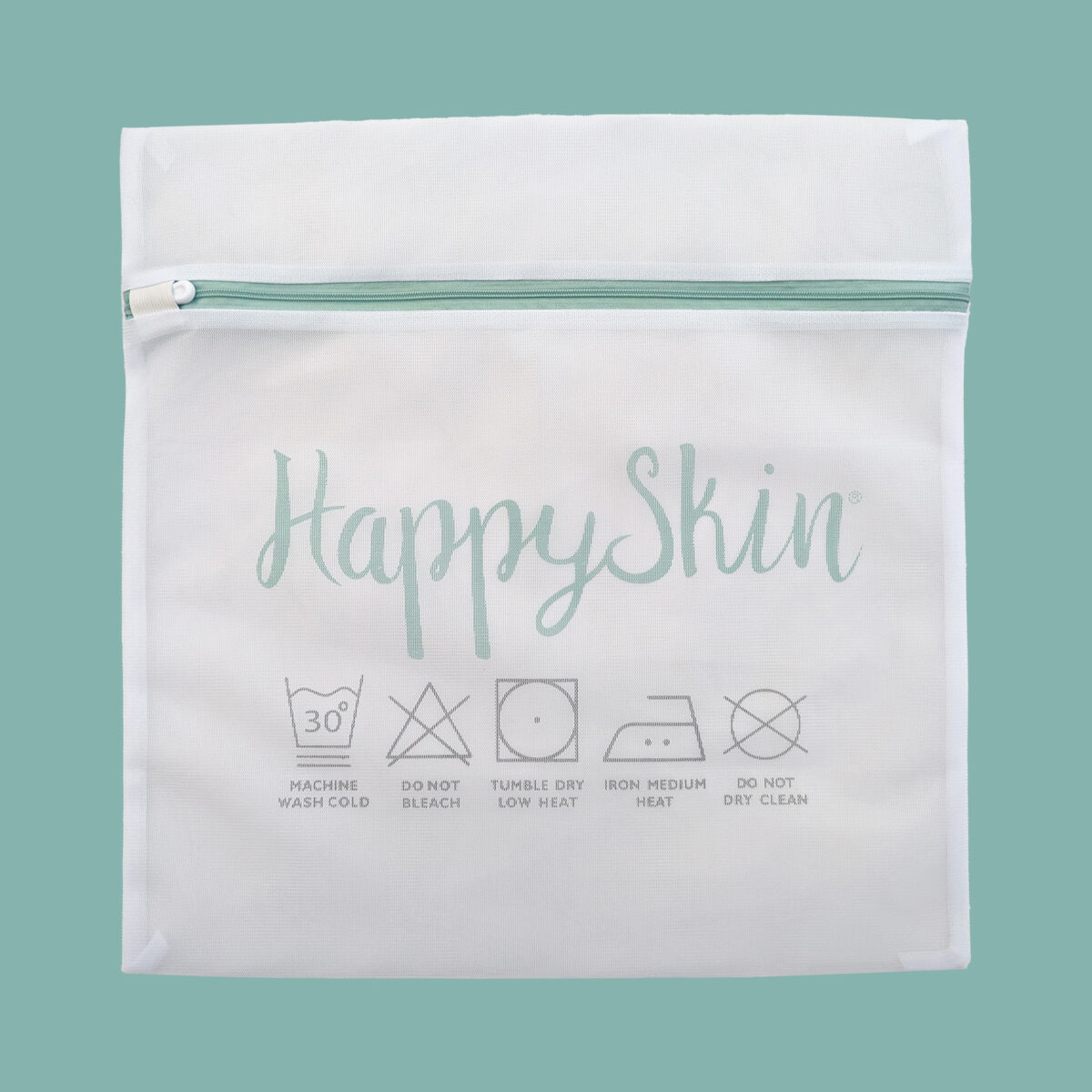 Introducing the HappySkin Eczema Clothing Garment care Mesh Bag – the perfect solution for maintaining the longevity and efficacy of your HappySkin garments.