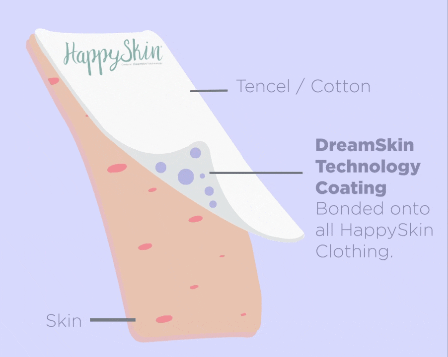 This clinically proven DreamSkin® technology coated on to all HappySkin® clothing has been a proven success in our NHS prescription range for over a decade and has been issued to patients when usual treatments such as emollients or steroids have not worked.