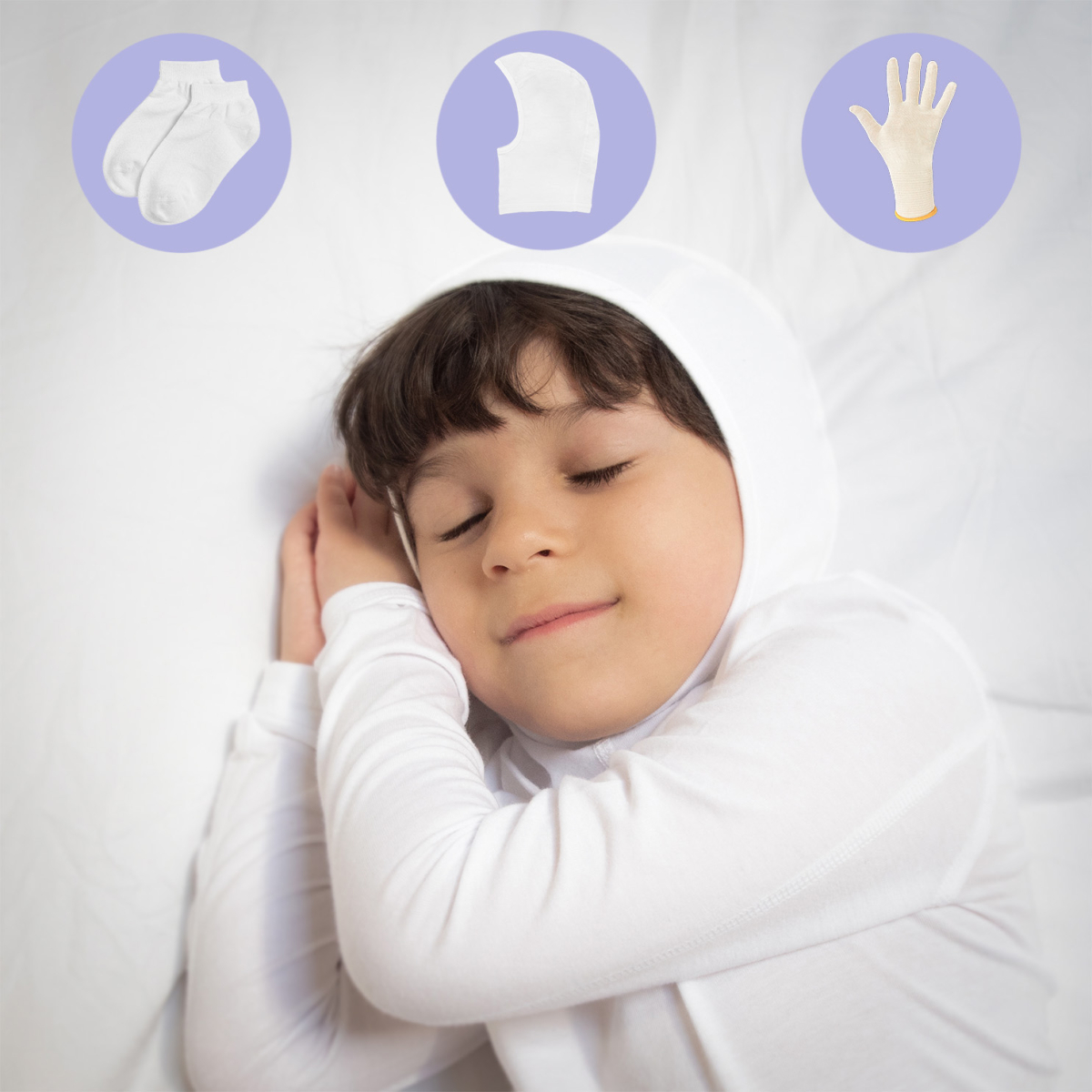 Our clinically-proven technology stimulates the dormant sensors under your child’s damaged skin, allowing it to manage moisture effectively. Not only does this soothe eczema, but also reduces itching and regulates temperature for better sleep and a happier child.