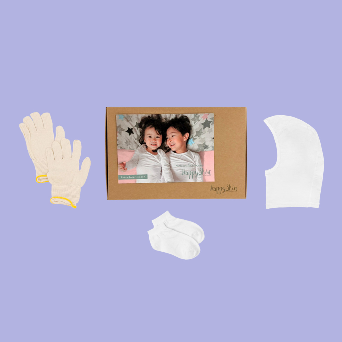 - Our eczema accessory child pack should be worn 24/7 during eczema flare-ups. The more HappySkin is worn, the more benefit your child will get.